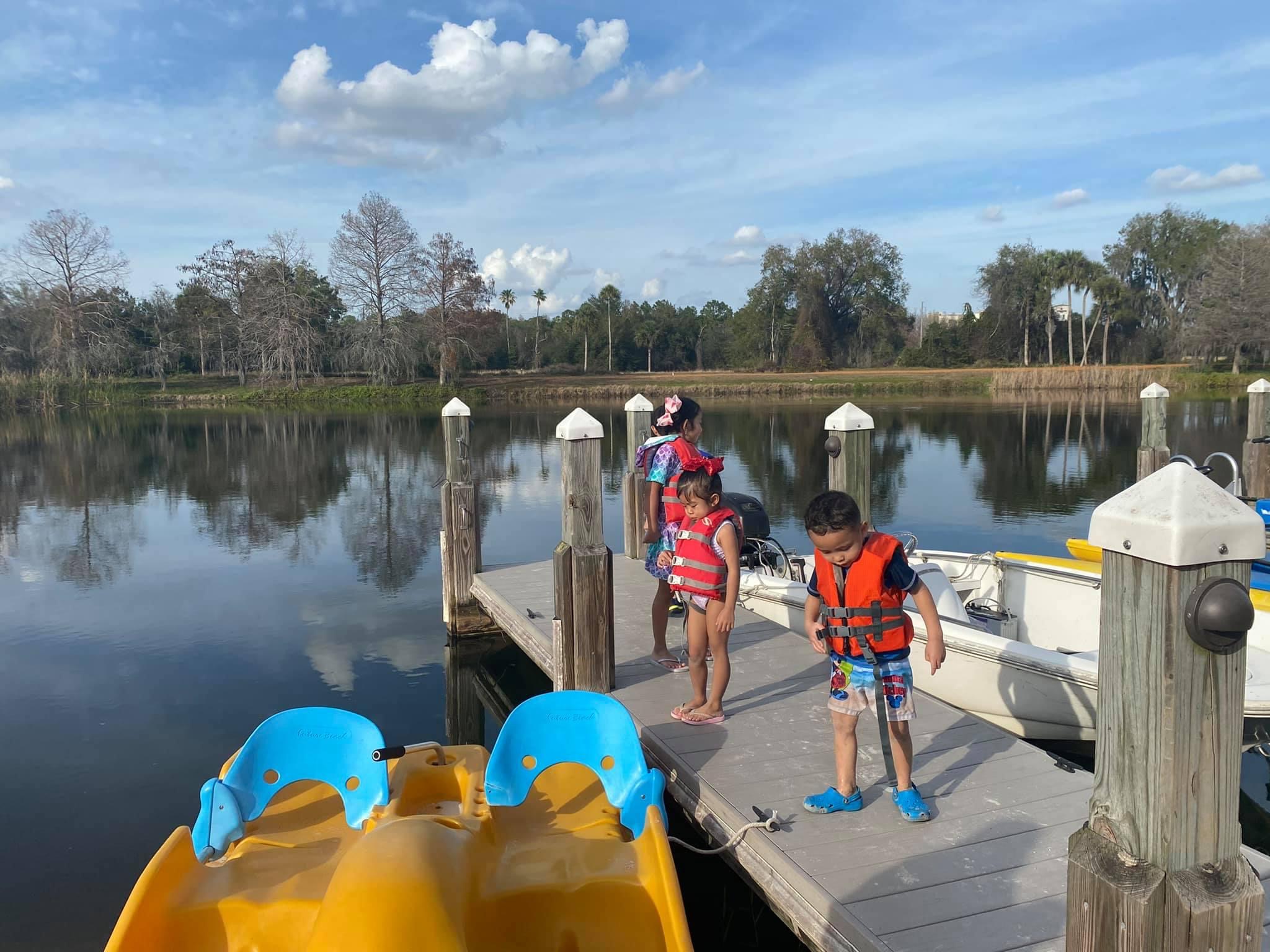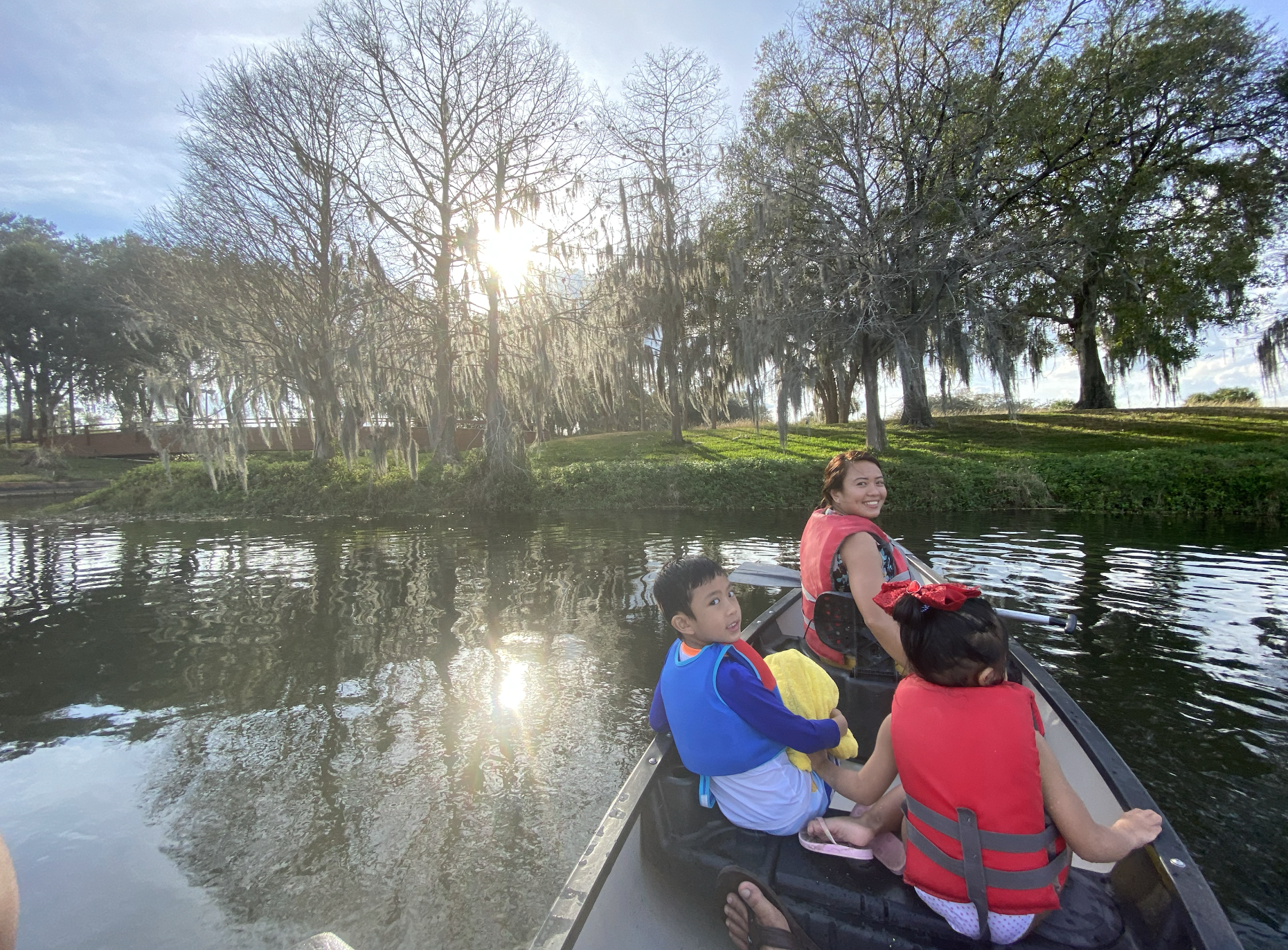We stayed at the Hyatt Regency Grand Cypress to enjoy an upgrade suite and amenities like this pedal and canoe on the lake. We took advantage of what the pandemic offered and enjoyed the open 1500 acres of space for hiking, bicycle rides and swimming the pool’s swim-through cave all to ourselves.