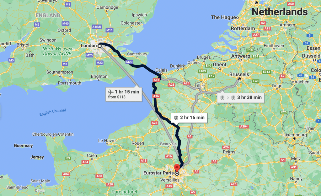google map | Eurostar London to Paris train | Eurostar route trip