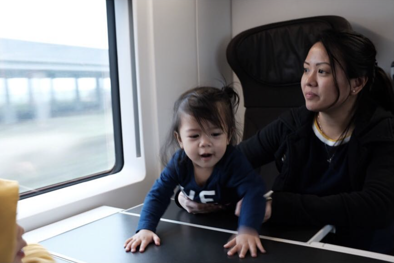 As we took our seats in the train a generous gentleman approached my family and asked me if we wanted to trade places with them. They were a couple early in their 60’s with a bigger table and an actual seat for four. I willingly gave up our seats (for three) and immediately positioned the kids by the window. There was even a space for the duffle bag between Joel and me. I tried to catch a glance again their way to thanked them the second time but they were far into a lovely conversation with content in their faces.