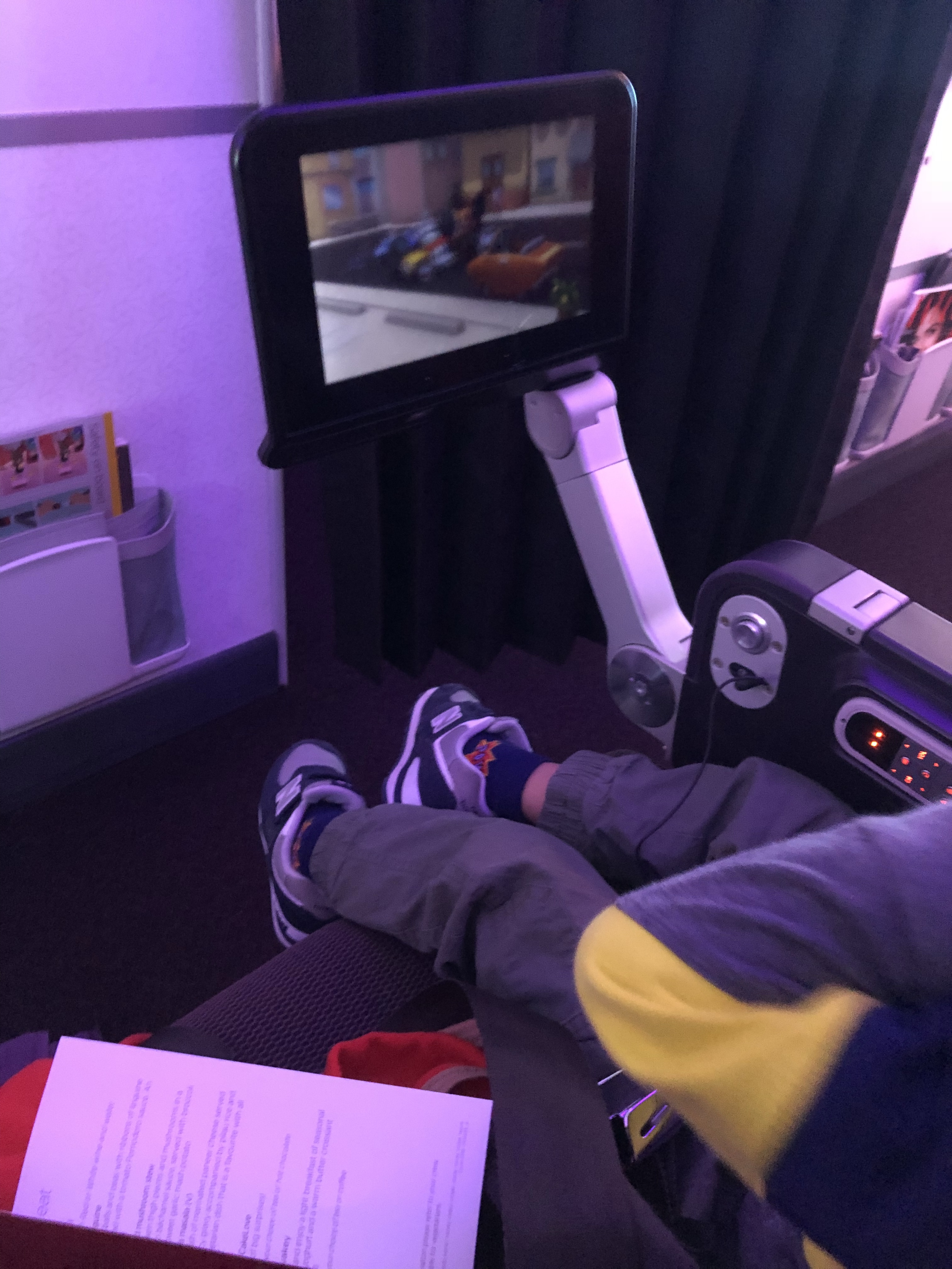 Many of our international flight usually follow the same routine in four separate phases. (1.) The first meal, (2.) sleep, snack(s), (3.) second meal and (4.) preparation for landing. This is a small peak in to our travel with a toddler and school age children.