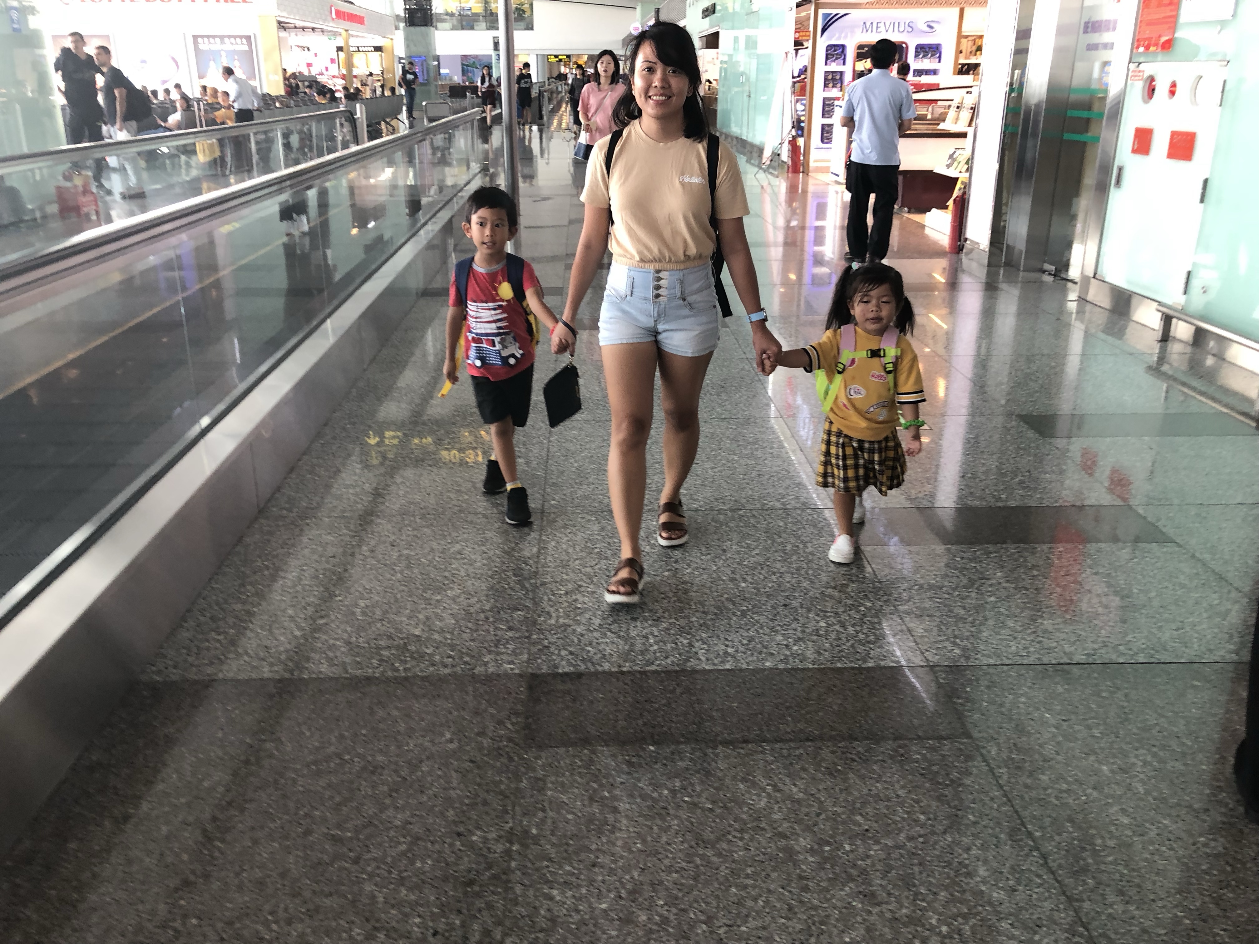 left: a successful 23 hour flight to Vietnam | right: the foldable GB pocket stroller ready to go. Joel at 5 years old after landing in Florida.