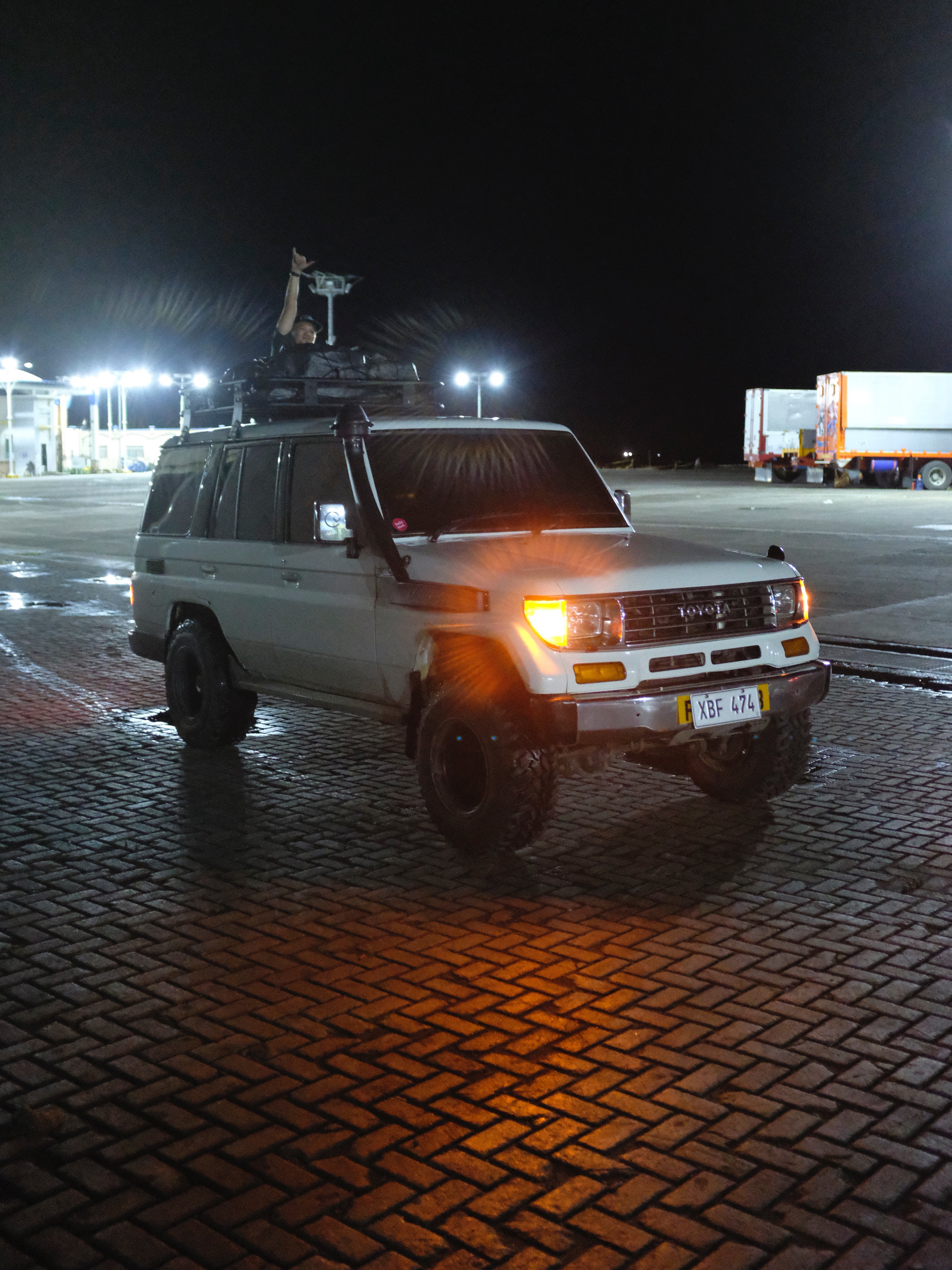 our wonderful friend Daniel and tour guide with his mint condition Land Cruiser 70 series | a quick pose shortly after unloading his vehicle from the Ro-Ro Reina Veronica boat