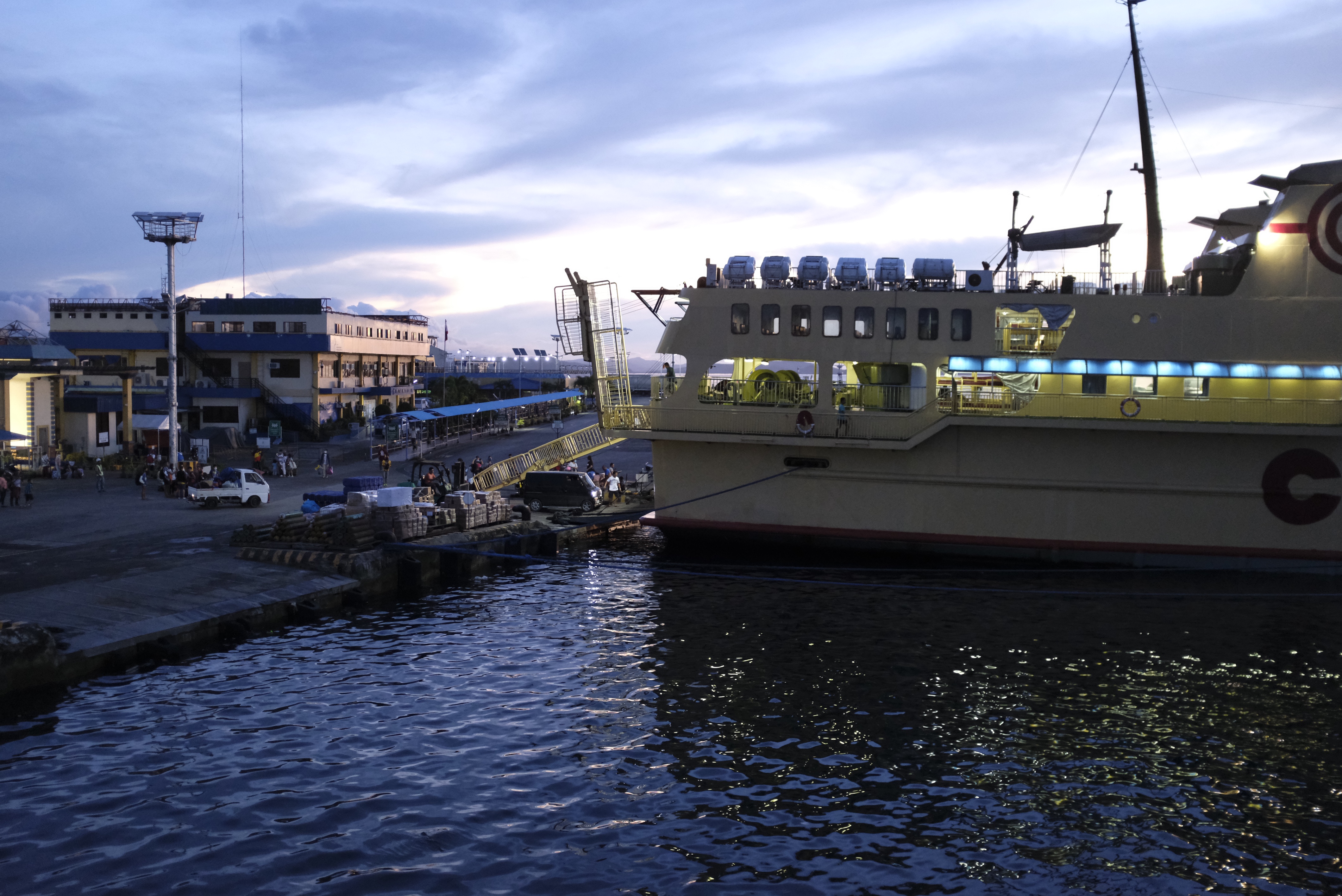 We made it early to the Surigao pier incredibly fast and smooth two hour drive. A hint of idle ghost like town sweep the streets and party goers zigzag their way back home. Dan Dan makes a trip inside to collect a one way ticket ride on a Ro-Ro boat to take the vehicle across into the island of Siargao. The kids awake this early morning and collectively yawn to a conversation that turn laughter and even a smart and foolish outburst.