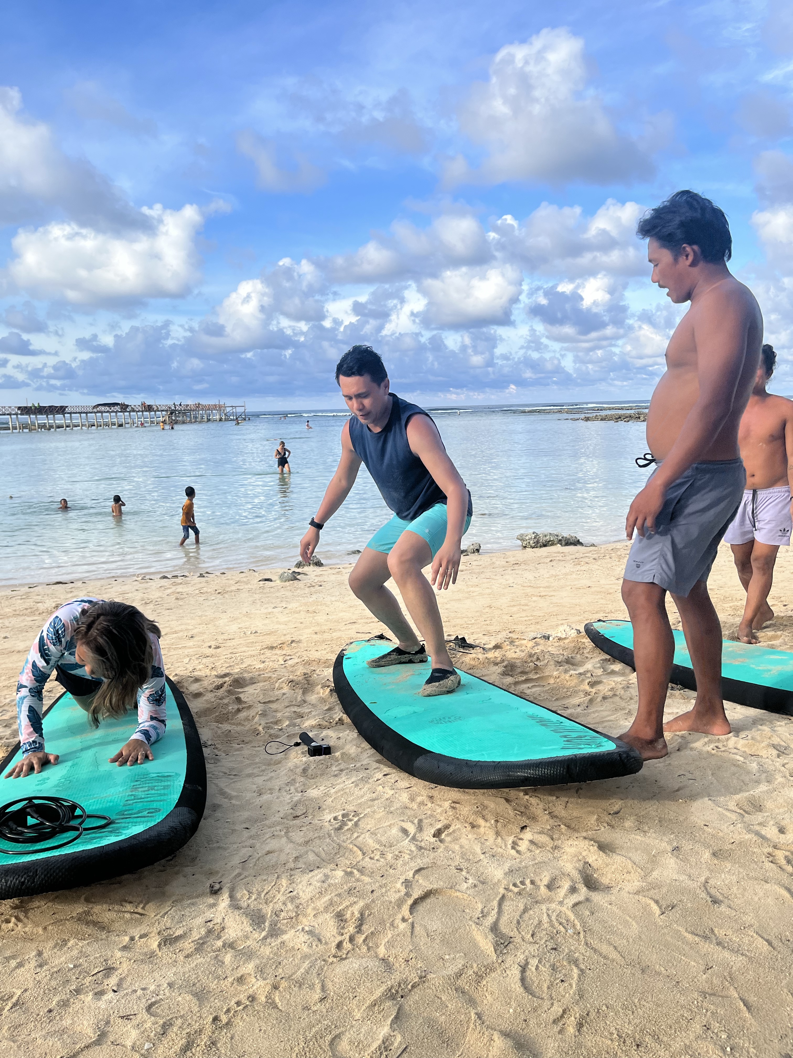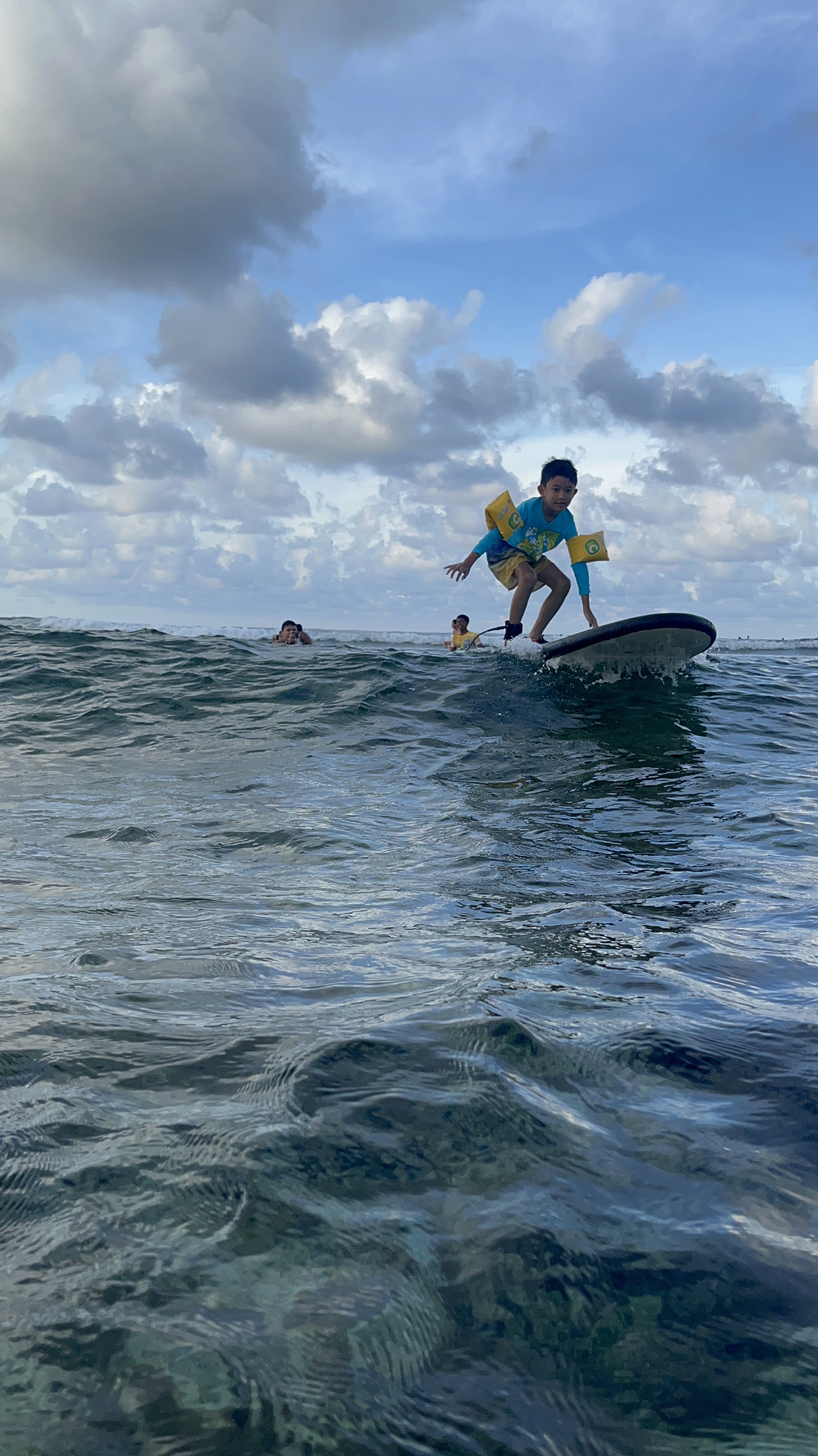 our wonderful surf instructor watching the kids as the adults take turn to enjoy the waves.