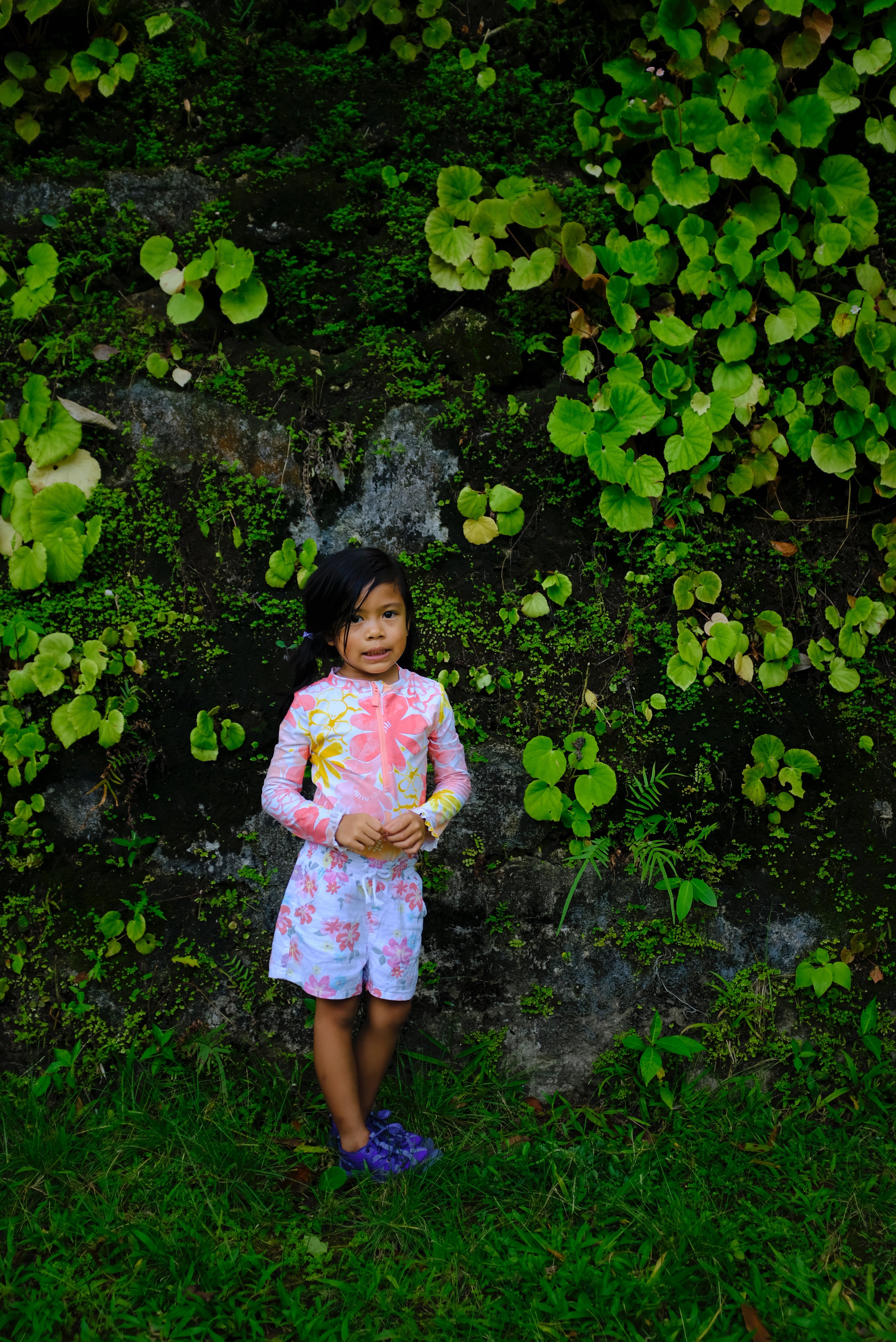 Featured cover image was taken inside the Gui-ob church ruins that testify the people’s faith and how it stood the testimony of time nestled in a canopy of Kamago or ebony trees reclaiming its place in history. It is one of the most beautiful ruins you will find in the island | photo above; left: thriving green and moss cover the coral stone built walls of the church draped in volcanic remains, right: India standing at the entrance of what remained of the Gui-ob church