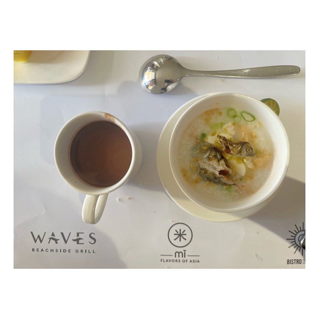 photo on the right: congee with tofu and dried fish, sikwate (from roasted and ground cacao kernels), suka tuba (fermented coconut tree sap; vinegar).