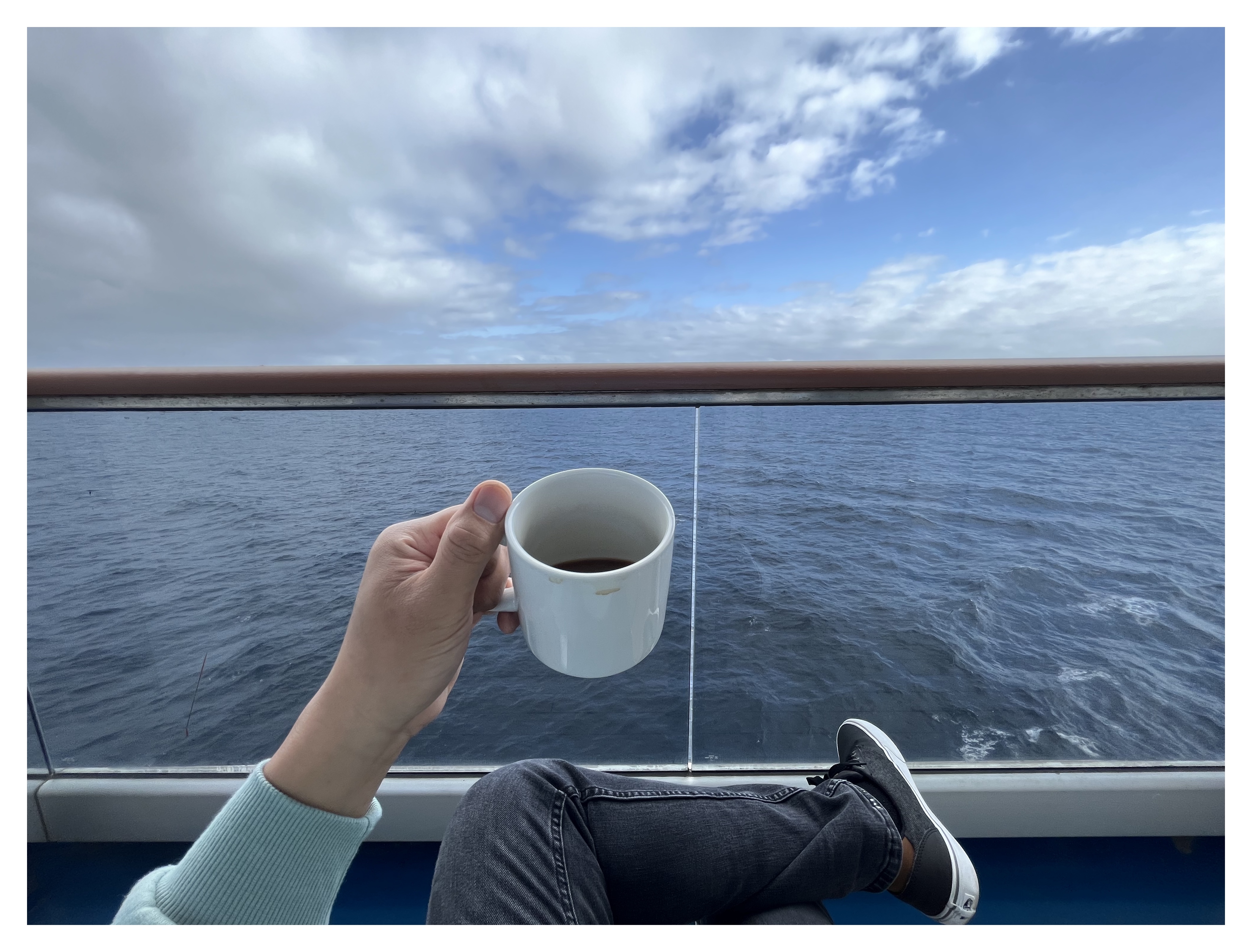 enjoying solitude with a cup of coffee while the kids are asleep and before the start of a fun filled day ahead.