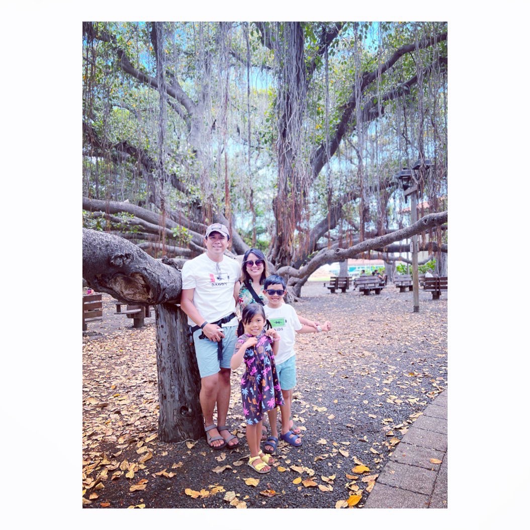 Our before and after photo nine years in the making. Thank God for family, We are the banyan tree. | This is in the historic site in Maui where the centuries old Banyan tree continue to create family of its own before the wild fire engulfed it. May this island find that Ohana, once more.