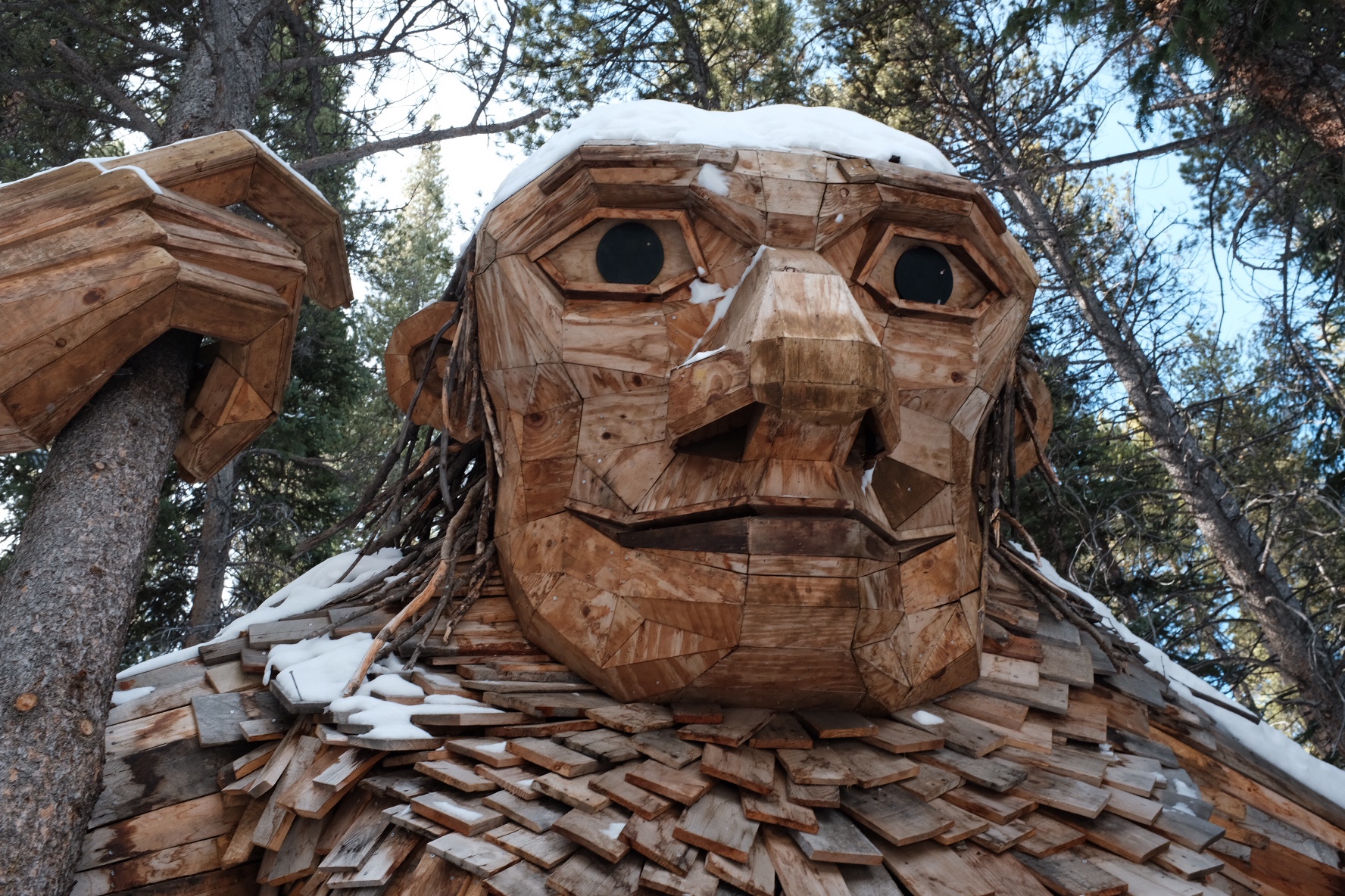 Isak Heartstone is a 15-foot tall wooden troll sculpture on the Trollstigen Trail in Breckenridge, Colorado. Isak was created by Danish artist Thomas Dambo for the annual Breckenridge International Festival of Arts (BIFA) in August, and he is known for promoting recycling by making art from trash.